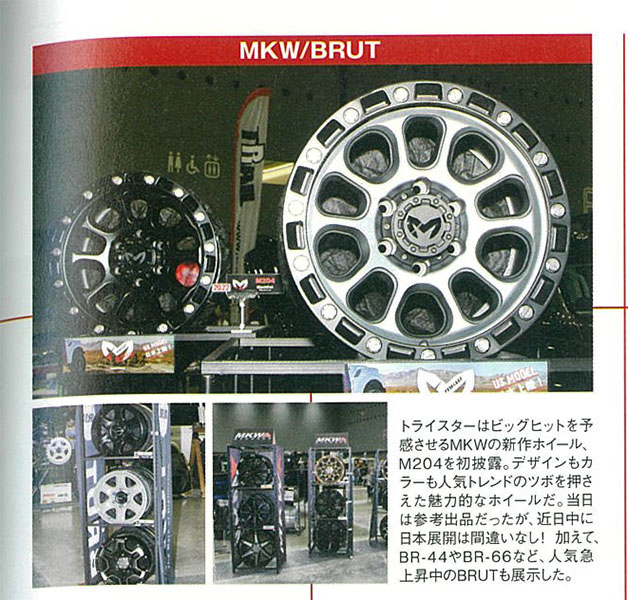 待望のMKW▲新作ホイール「M204」Black Cat(ブラックキャット)とDry Gray(ドライグレー)が2ページにわたり紹介されております! (P82-83)