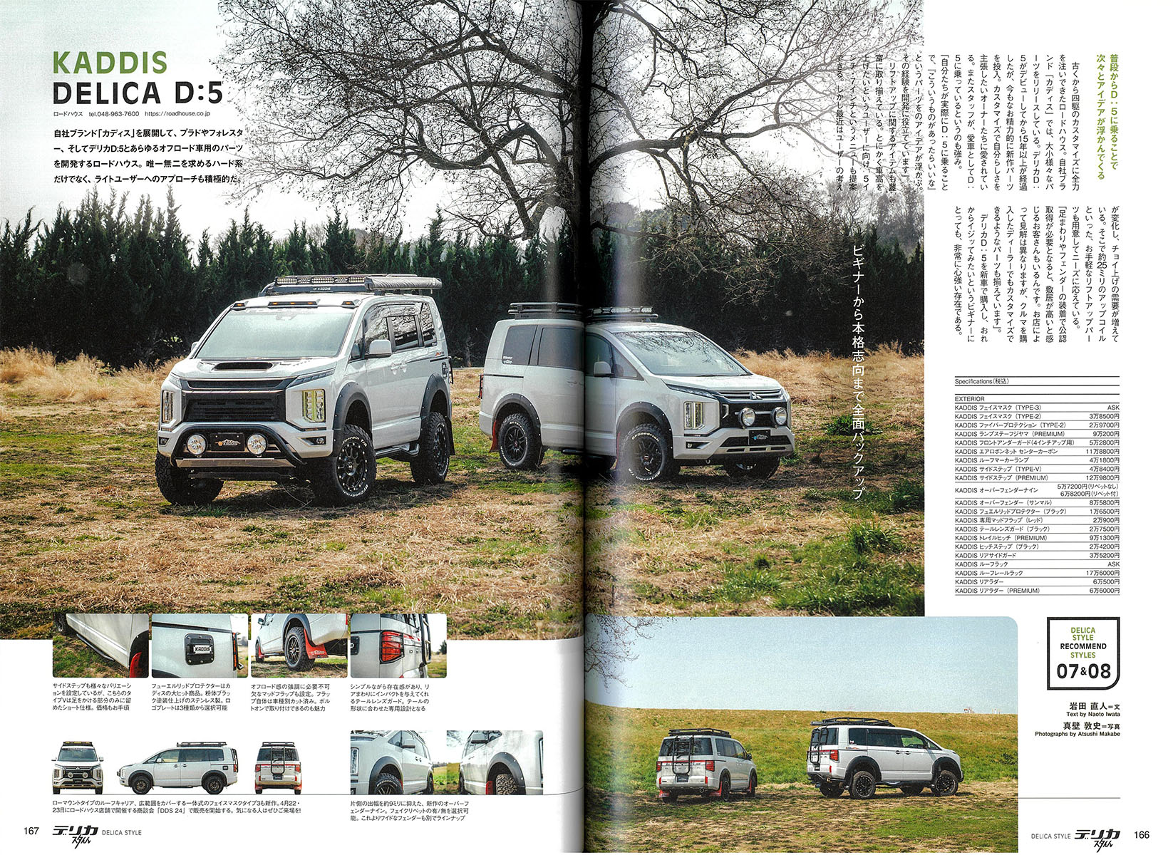 MKW▲「M204」Black Cat(ブラックキャット)JP SPECを装着したロードハウス様デモカーのデリカD5が掲載・紹介されております! (P166 – 167)