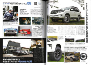 GOOSFAM(SANO AUTO)様デモカーのランクル250に「M205」JP Specのコヨーテブロンズとランクル・プラド150にオリジナルモデル「M203」を装着して掲載・紹介されております。(P216 – 219)
