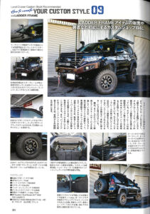 MKWの兄弟ブランドHOSTILEの「H138 CRAWLER」を装着したLADDER FRAME(ラダーフレーム)様デモカーのLAND CRUISER 150 PRADOが掲載・紹介されております。(P231)