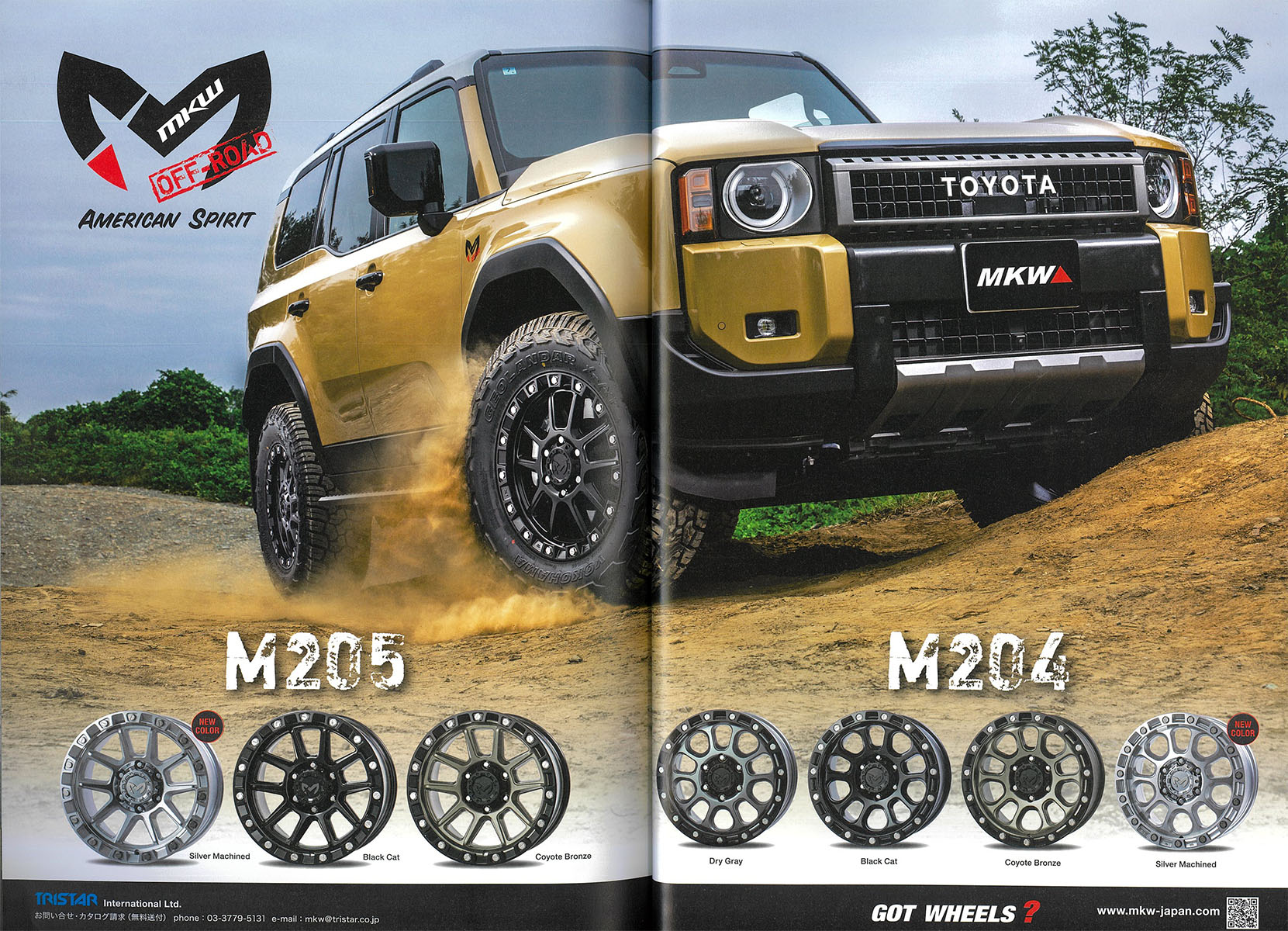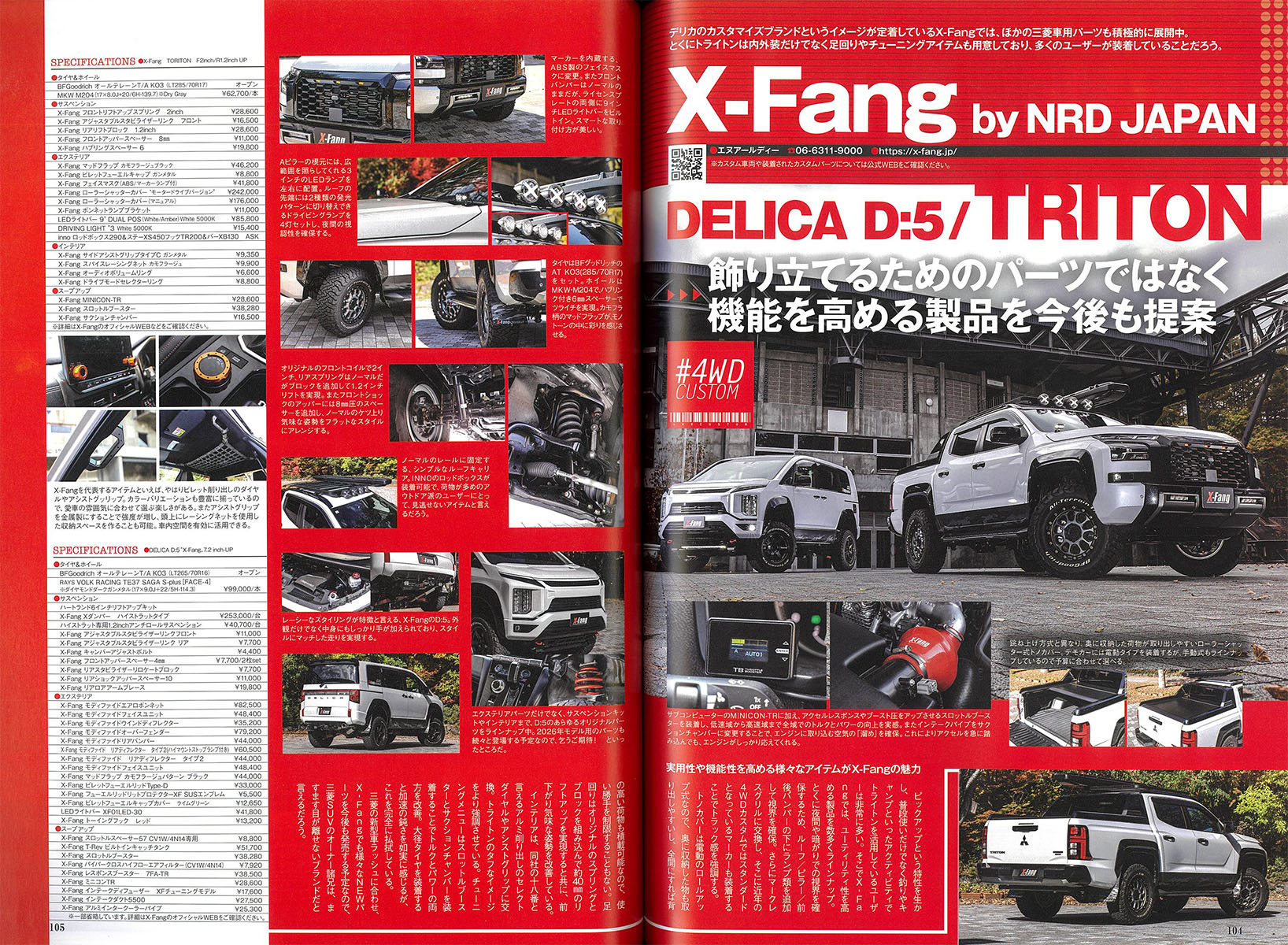 MKW OFF-ROAD「M204」JP Spec 17インチのDry Gray(ドライグレー)を装着X-Fang様デモカーのTRITON(トライトン)が掲載・紹介されております。(P104 – 105)