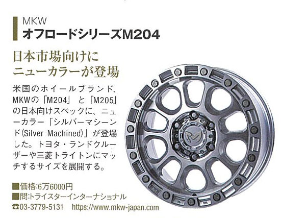 Goods紹介ページにてMKW OFF-ROAD「M204」JP SpecのNewカラー:Silver Machined(シルバーマシンド)が掲載・紹介されております。(P145)