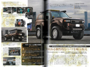 MKWの兄弟ブランドHOSTILEの「H135 RIDGE CREST」を装着したLADDER FRAME(ラダーフレーム)様デモカーのLAND CRUISER 250が掲載・紹介されております。(P258 – 259)