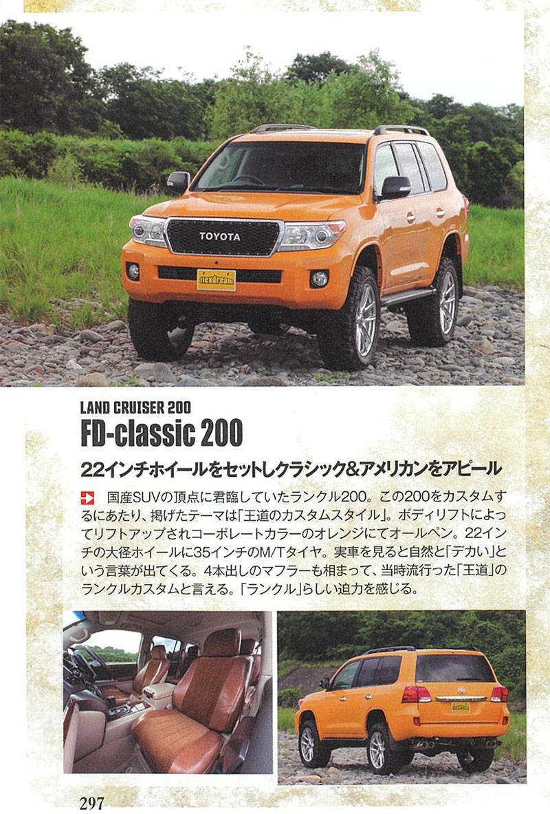 MKW の鍛造モデル「FG-5」22インチを装着したフレックスドリームデモカーのランドクルーザー200が掲載・紹介されております。(P297)