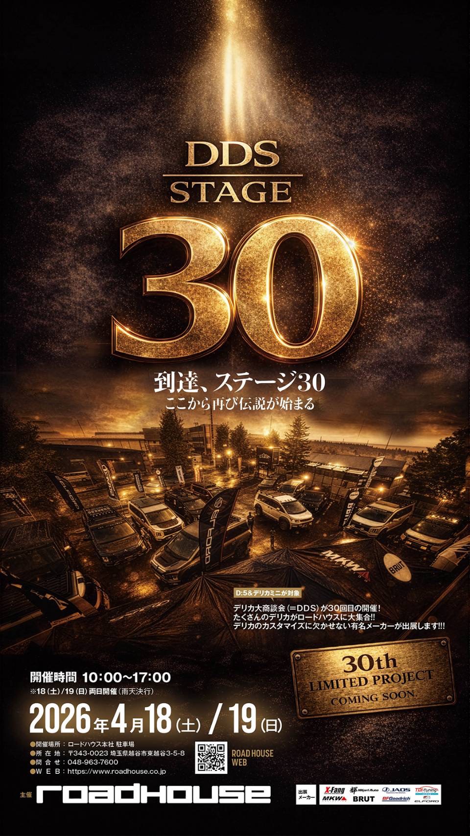 2026年4月18日(土)、19日(日)2日間にわたりロードハウスさんにて開催される「DDS STAGE30」に出展致します!